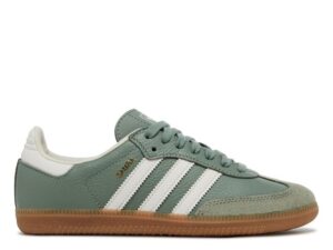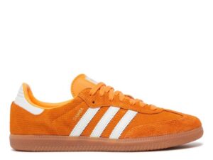 This adidas Samba iteration has a reinforced toe with a double layer construction that is designed to provide additional stability and durability. There is also a rubber cup sole outsole that is directly bonded to the upper and helps to offer abrasion resistance.