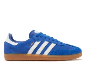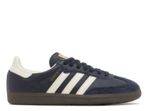 Crafted from full-grain leather, the upper of the Cloud White Core Black adidas Samba OG (Women's) offers a sturdy and resilient construction. A gray suede, paired with a contrasting black heel tab, introduces an element of sophistication to the overall design. The iconic serrated 3-Stripes appear in black on both the lateral and medial sides, creating a visually striking contrast. Enhancing the shoe's unique identity, a Bluebird tongue label and a foil logotype mark its distinctive DNA. Underneath, a brown gum rubber outsole ensures both traction and durability, underscoring the shoe's practicality and style.