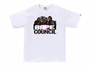 The Japanese streetwear brand A Bathing Ape (BAPE), founded by Nigo in 1993. The name, and the iconic ape head logo, are inspired by both the 1968 film Planet of the Apes and the Japanese proverb “a bathing ape in lukewarm water,” which ironically describes someone who overindulges or is satisfied by luxury, referencing BAPE’s high prices and target demographic of wealthy, young consumers.
