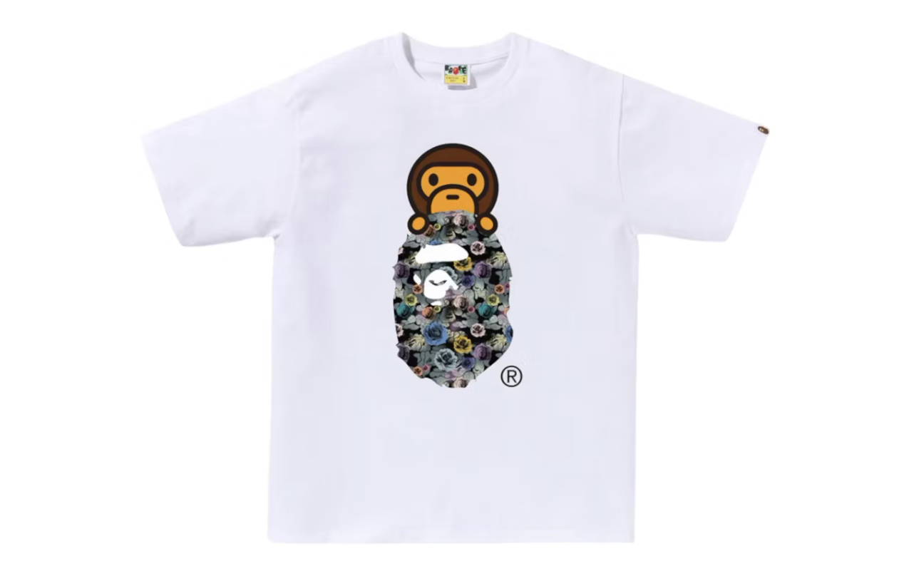 BAPE A Bathing Ape Floral Camo Milo On Ape Head Tee