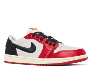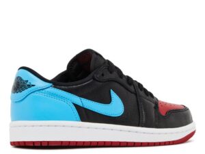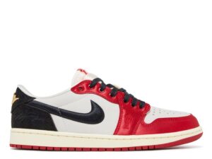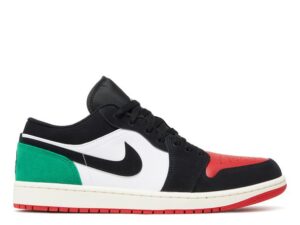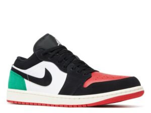 The Jordan 1 Low Bred Toe takes cues from the 2018 Air Jordan 1 High Bred Toe with its signature black and red color blocking. The upper is composed of white, black, and red leather, with black and red leather smothering the vamp, Swoosh, and heel while white leather is prominent on the quarter panel. From there, an embroidered Wing logo on the heel and a Jumpman tongue label complete the design.