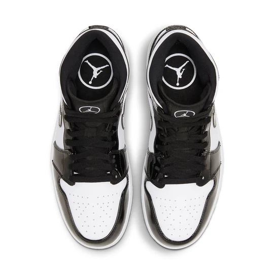Just like each pair within the All-Star pack, the Air Jordan 1 Mid Carbon Fiber also features a black patent leather upper. Under the light, a pattern resembling carbon fiber plating, similar to those found on the outsoles of Jordan 11s, appears on the patent leather upper as well. White leather underlays and a white Wings logo on the ankle add contrast to the shiny material. Lastly, a Jumpman tongue tag is stitched onto a nylon tongue.
