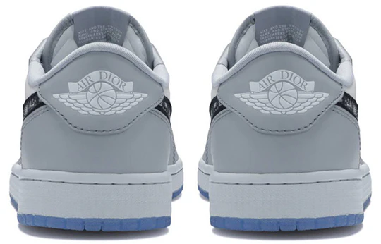 This Jordan 1 Retro Low is composed of a white and grey leather upper with traditional Dior monogram print Swoosh. These shoes are made in Italy with premium materials. Co-branded icy translucent soles, Dior branded tongue and Wings logo, and a silver "Air Dior" hang tag completes the design. These sneakers released in April of 2020 and retailed for $2,000.