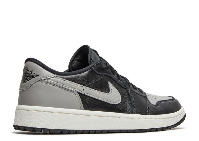 Taking cues from the original 1985 Air Jordan 1 Shadow, the Jordan 1 Low Golf Shadow arrives with a black and Shadow grey smooth leather upper. A woven Jumpman tag on the tongue and a Wings logo debossed at the heel decorate its neutral palette. From there, a grooved outsole contributes the traction needed for a steady golf swing.