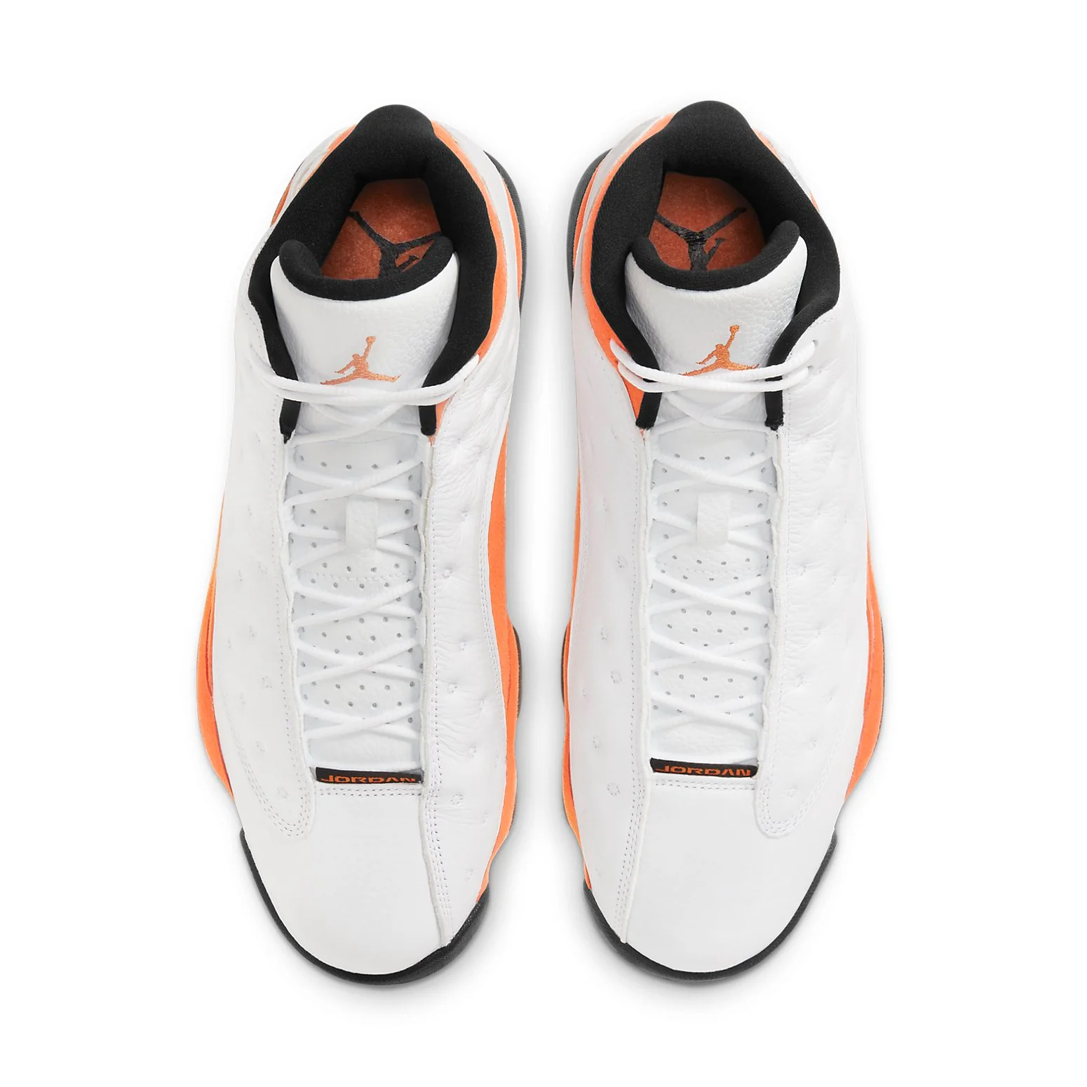 The sneaker is fashioned in similar color-blocking techniques that appear on past colorways. The upper consists of white tumbled leather and orange suede that continues down to the midsole. A familiar holographic badge appears on the heel, while a carbon fiber shank plate is installed on the outsole to provide stability on the court. An orange-embroidered Jumpman appears on the tongue to complete the Jordan sneaker.