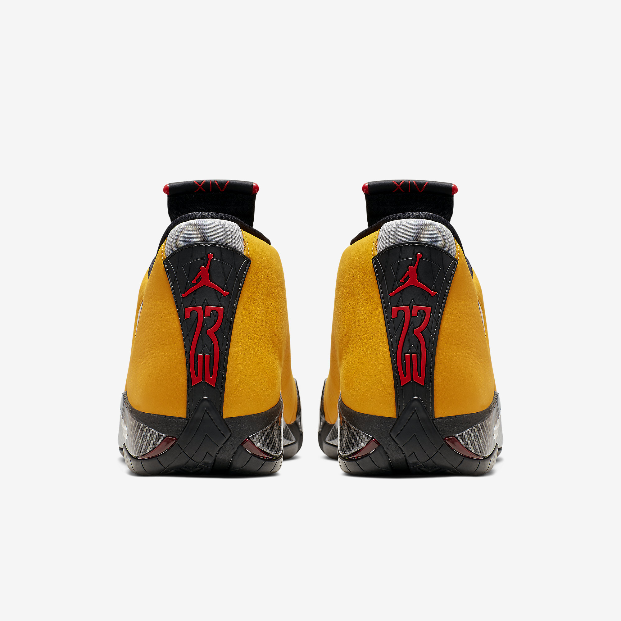 The leather upper of the shoe boasts black and yellow color scheme. However, the yellow hue is featured more prominently. The tongue and heel logos are highlighted by University Red hits, although the traditional Jumpman badge is still present. Underfoot, a midsole with Zoom Air units and a tire-inspired outsole with a herringbone grip pattern is included. The outsole features the same black color as the tongue, completing the design.