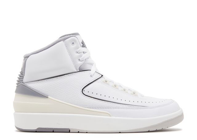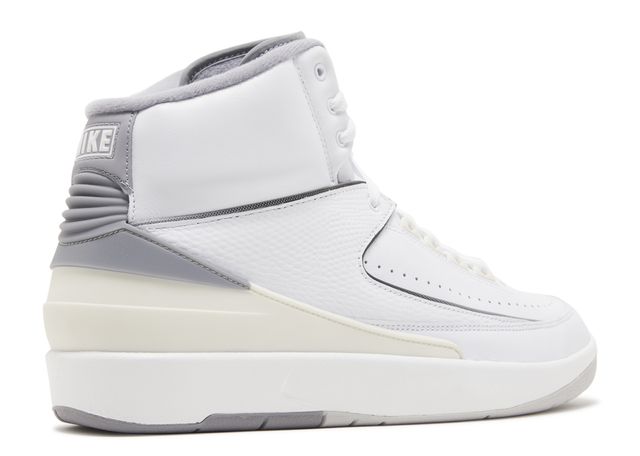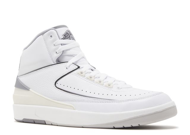 The Air Jordan 2 Retro Cement Grey is constructed using white leather throughout the uppers, with sail and grey accents on the heel and sockliner. The Retro Air Jordan model comes with specially designed insoles with the famous Michael Jordan skyline photo with the phrase "Look, up in the air".