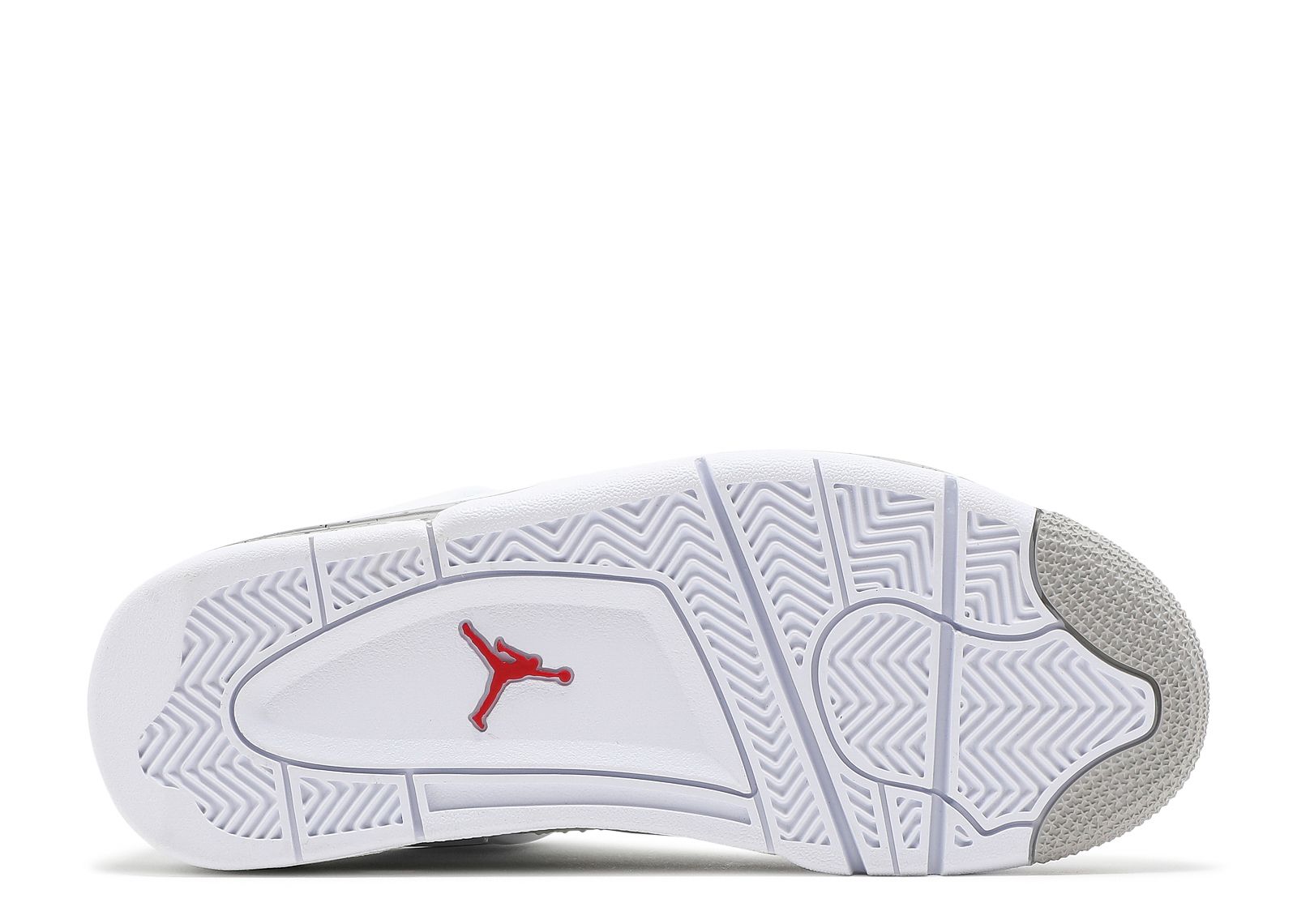 The Air Jordan 4 Retro GS 'White Oreo' is a grade-school iteration of the shoe known for 'The Shot.' Appearing here in a neutral colorway, the shoe's upper is built with tumbled leather, finished in white and complemented by Tech Grey throughout, including on the speckled, molded eyelets. The usual mesh inserts mark the quarter panel and vamp, while the tongue adds Fire Red via the Jumpman branding. Underfoot, visible Air in the heel of the midsole provides cushioning.