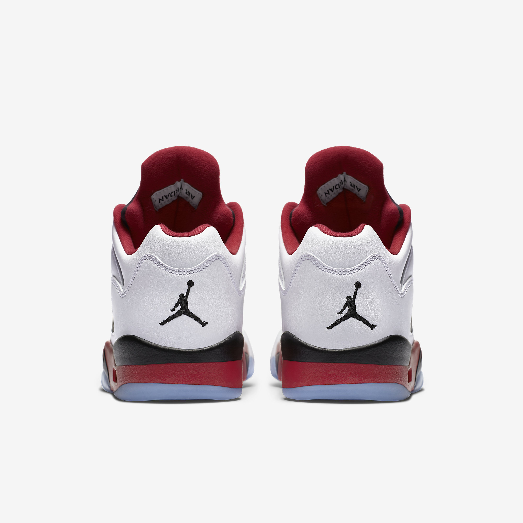 The shoe’s upper is predominantly white with highlights of red around the collar and midsole, and black on the tongue and mesh panels. A few stand out design elements on this shoe include mesh netting on the side panels, which allows for breathability and adds a distinct visual element, a visible Air unit in the heel for cushioning and impact absorption, and a plastic lace lock system. It maintains classic branding details in the form of the Jumpman logo on the heel and tongue.