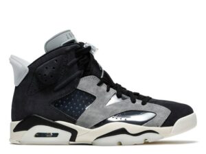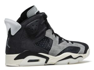 The Air Jordan 6 Retro Bordeaux GS features a black and grey Durabuck upper that comes in a two-tone nature, which resembles the Jordan 7 Bordeaux's original design. This sneaker comes in a combination of black, light graphite, and dark grey color schemes.