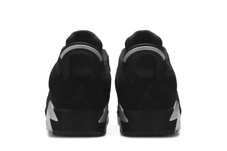 The Chrome Jordan 6 Retro Low (2015) has an upper that is made of durable black nubuck. The shoe's midsole features a visible Air-Sole unit that provides responsive cushioning and shock absorption. The sneaker's outsole is translucent and provides traction and stability. The shoe's lacing system and heel pull tab provide for a secure and adjustable fit. The sneaker's design is completed with Jumpman branding on the tongue.