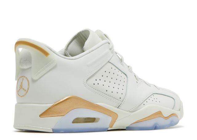 At first glance, the Air Jordan 6 Low Chinese New Year is reminiscent of the 2012 Air Jordan 6 Golden Moments Pack. It features a white leather upper with perforated panels and gold detailing. On the interior, a marbled print of tiger camouflage commemorates the Year of the Tiger. A golden midsole atop an icy translucent outsole adds the finishing touch to this regal design.