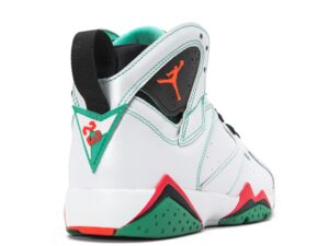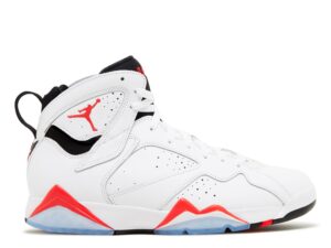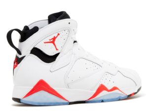 The Air Jordan 7 Retro Barcelona Nights come with black, Blue Graphite, retro, and infrared colorways. The sneaker is a product of synthetic leather and rubber which completes the texture. The Jumpman rests at the top of the sides of the heel and the number 23 is branded at the back of the heel.