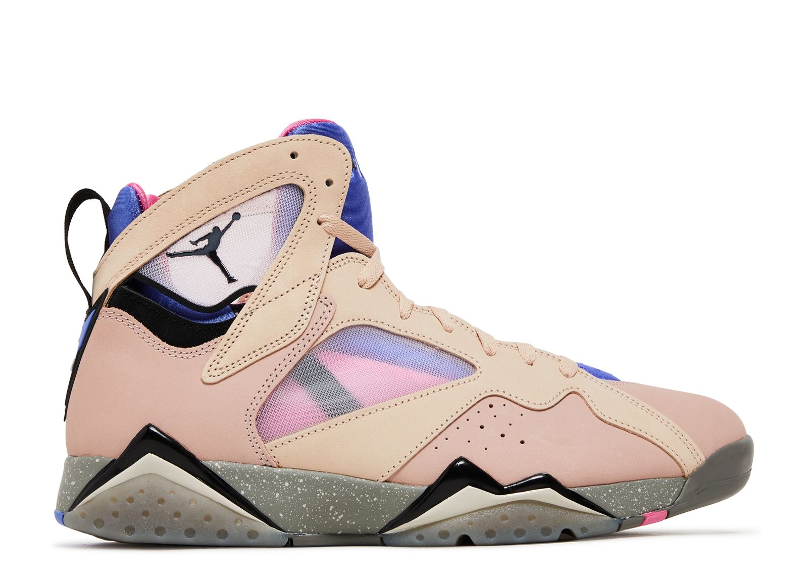 The Air Jordan 7 SE Sapphire features a Shimmer leather and Durabuck upper with semi-transparent mesh paneling that reveals its dazzling bright blue and pink interior. At the collar, a Jumpman logo and layered ankle padding commemorate the original Air Jordan 7 design. Lastly, a grey speckled midsole and muted translucent outsole add the finishing touches.