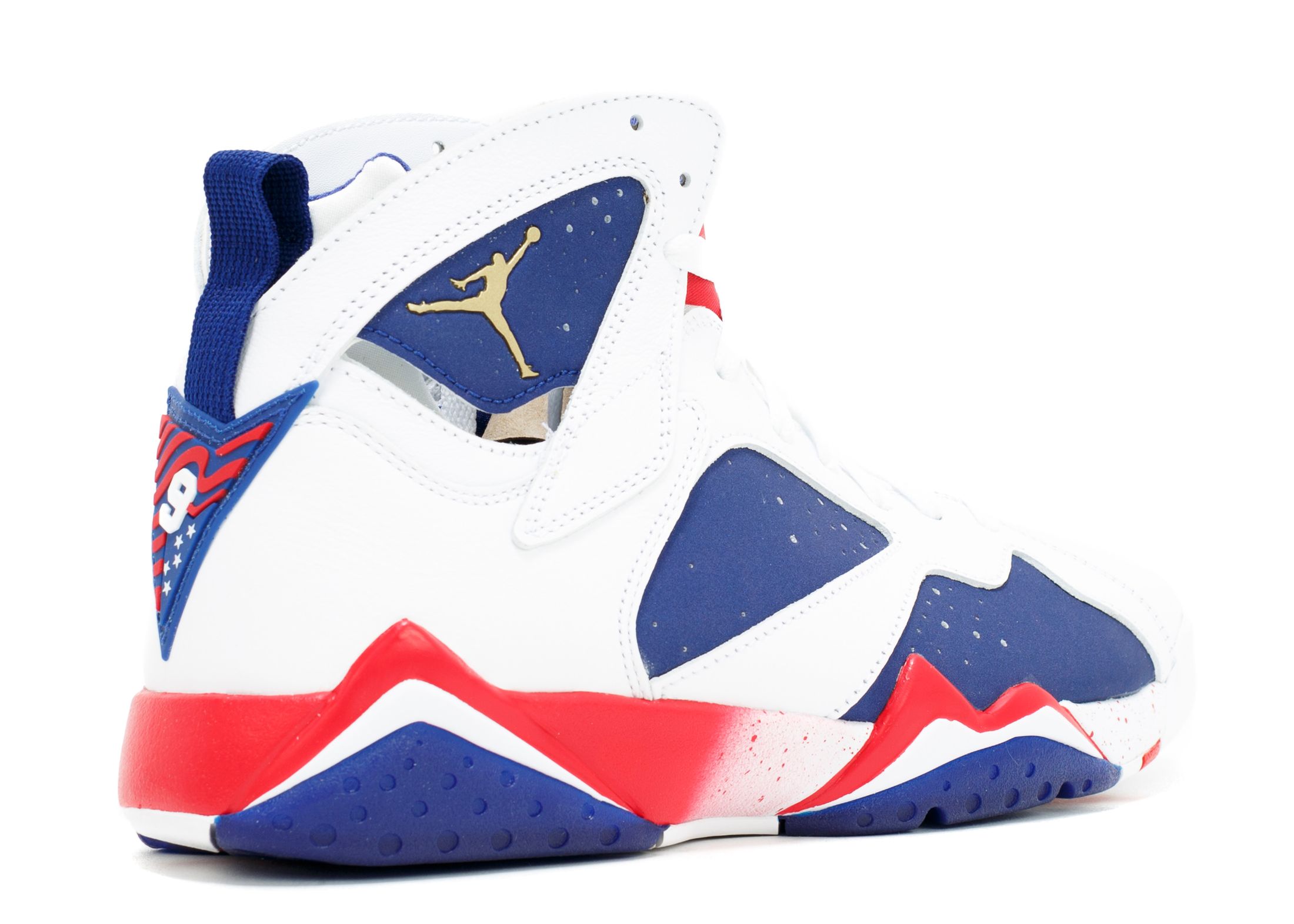 This colorway is said to be one of the original versions of the Olympic inspired Air Jordan 7 designed by legendary Tinker Hatfield. Unlike the OG Olympic VII, the Tinker Alternate colorway features a contrasting Midnight Navy and white upper. The midsole also differs significantly from the original with a gradient pattern and the always popular paint splatter detailing. Michael Jordan may have never had the chance to wear this colorway back in the day but there is no doubt the red, white and blue proudly represents Team USA on the Tinker Alternate Air Jordan 7 Retro Olympics.