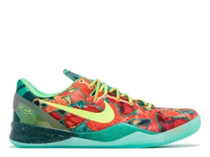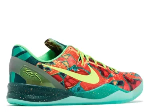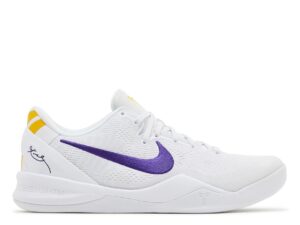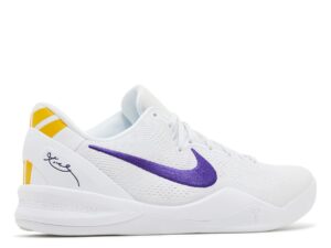 This sneaker has a white, neutral gray, del sol, and black color scheme. The polyurethane ‘islands’ create a texture on the grey and white upper. The shoe is fortified with a black molded heel counter and accented with a matching black Swoosh. The midsole has a large and flexible Air Zoom Turbo unit in the forefoot and a foam compound in the heel. Underfoot, rubber outsole has a snakeskin-inspired traction pattern and Kobe’s signature.