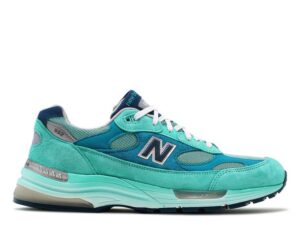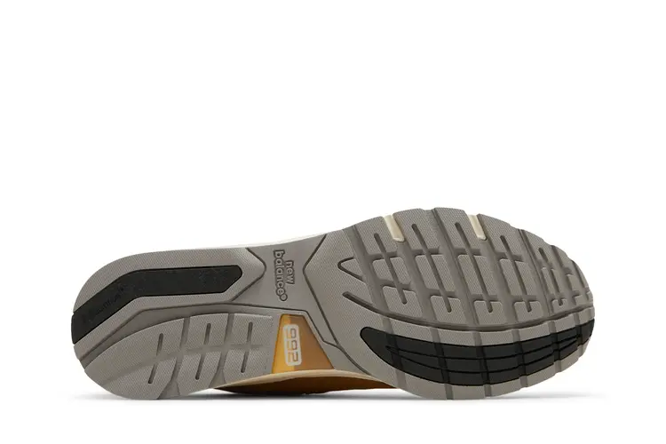 Wheat Brown dominates the upper, which is constructed with nubuck. A darker shade of Brown appears on the mudguard and heel. Branding details include a tonal ‘N’ logo stitched on the sides, New Balance 992 branding on the tongue, ‘992’ etched on the lateral collar, insole branding, and ‘USA’ wording on the heel window. An Off-White ABZORB-cushioned midsole and a Light Grey rubber outsole round out the design.