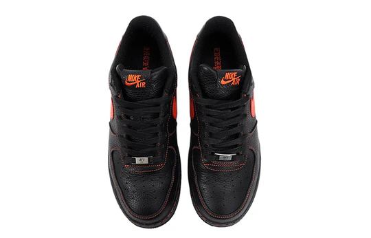Released in 2017 at a pop-up in Harlem, New York, the Vlone x NikeLab Air Force 1 'Vlone' originally debuted at ComplexCon 2016. Sporting a black tumbled leather upper, the shoe is highlighted by orange hits on the branding, which includes the usual Swoosh, but also a 'V' on the heel patch and 'Every Living Creatures Dies Alone' across the heels. Contrast stitching throughout is also finished in orange.
