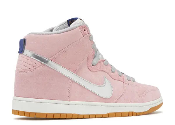 The Concepts x Dunk High Pro Premium SB 'When Pigs Fly' is the result of a collaboration between Boston retailer Concepts and Nike SB. Inspired by the 1982 teen comedy Porky's, the shoe features a Real Pink suede upper accented by a Silver Metallic Swoosh that cuts through the side wall. Grey emerges on the lining, tongue and laces, while underfoot, a gum rubber outsole provides traction. The shoe released in shower box packaging as a nod to the iconic scene.