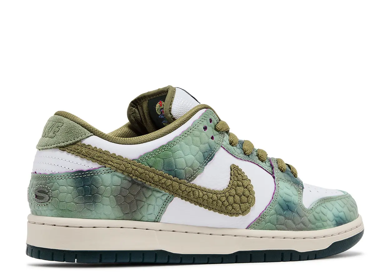 The Nike SB Dunk has been a cultural icon since its debut in the early 2000s, blending performance features with a design that has transcended the skate world. This latest iteration continues that legacy, featuring Sablone’s logo on the heel and interior of the sneaker. The green scale overlays reveal a purple layer underneath, adding a dynamic touch that changes as the shoes wear in. This mix of artistry, functionality, and personal expression makes the Alexis Sablone Chameleon Dunk an instant classic that appeals to skaters and sneaker enthusiasts alike.