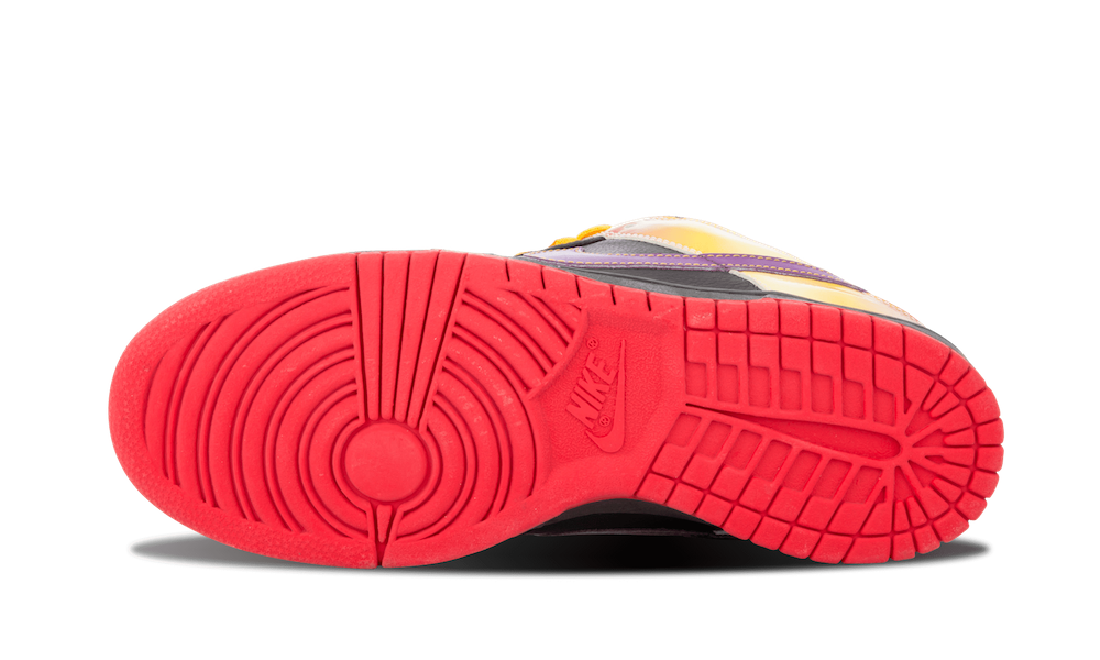 Inspired by the cover art of Guns N' Roses' 1987 debut album, the Dunk Low Pro SB 'Appetite For Destruction' features an Anthracite leather upper with black suede on the eyestay and toe overlay and a red-to-yellow gradient on the heel overlay. A Deep Violet Swoosh cuts through the design, with the red heel and tongue branding matching the outsole.