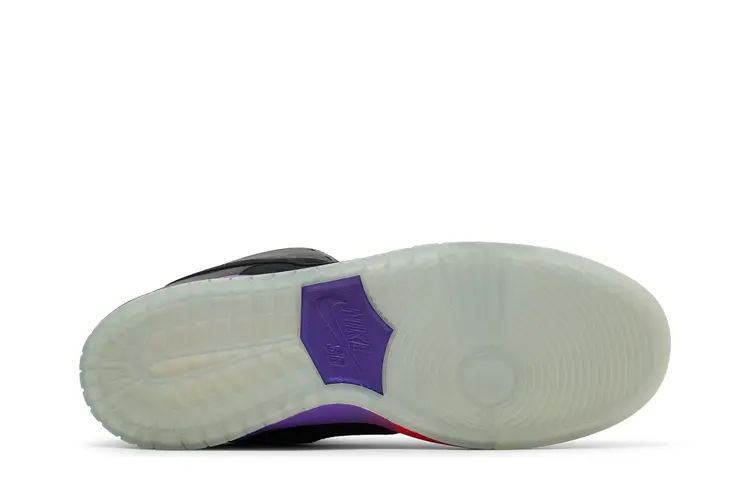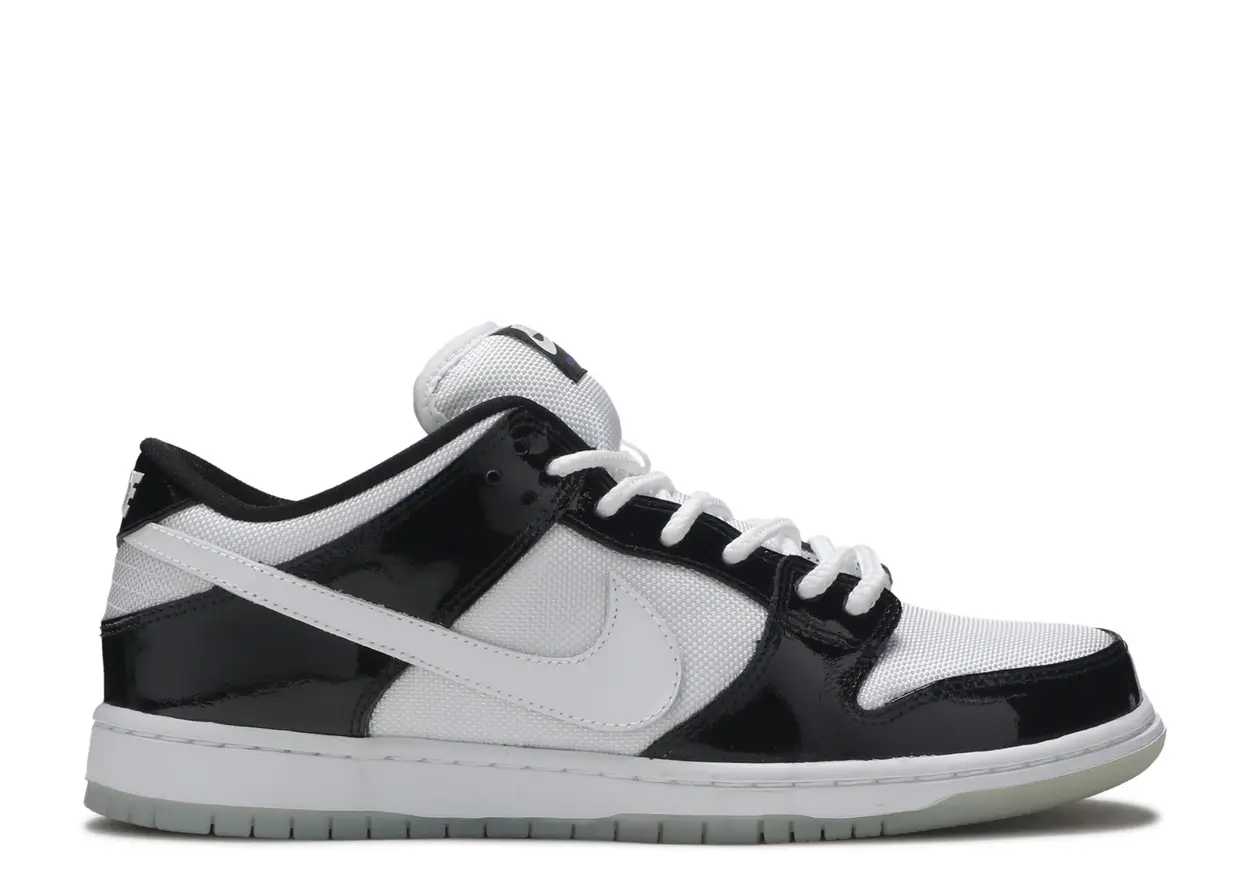 Available in a black, white, Ice Blue, and Dark Concord color scheme, this Dunk Low sneaker features an upper constructed with a white mesh base and black patent leather overlays. White leather Swooshes on the sides highlight the upper. The mesh detailing extends to the padded tongue, which has a ‘Nike SB’ branded tongue tag. Other details include white round laces, embroidered ‘NIKE’ branding on the heel tab, and branded insoles. A white midsole that rests on an Icy Blue outsole finishes off the design.
