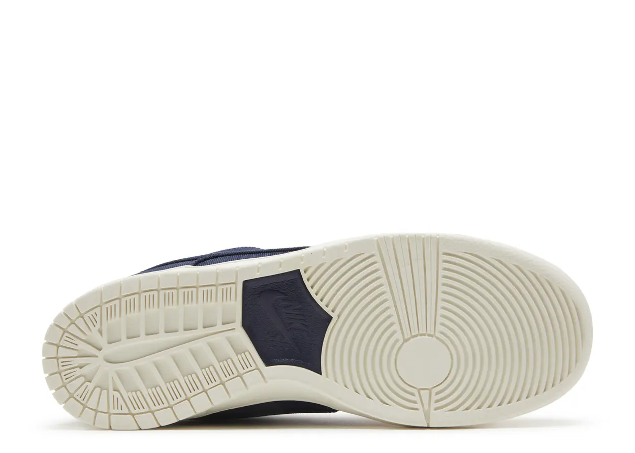 The sneaker’s upper is dressed in midnight navy canvas color schemes on its mid panels and heel, while its forefoot is covered in brown suede. On the padded tongue, in addition to a pull tab and a suede Nike SB tag, there is a concealed stash pocket with a zip closure. Before a neutral white midsole finishes off the look below, there is a distinctive motif embossed on the footbed.